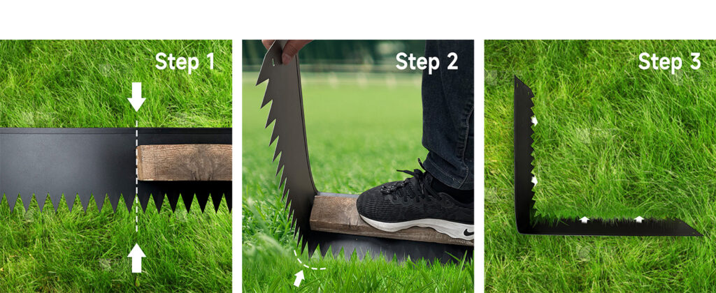 Before installing Metal Landscape Edging, make sure the soil at the installation site is soft. If the ground is hard, dig a narrow trench so you can bury the edging.
