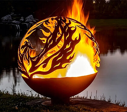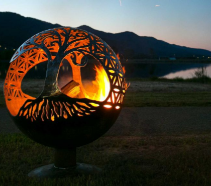 Fire Globe Corten Steel Sphere Fire Pit Tree