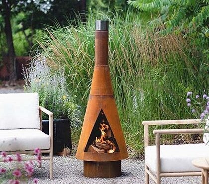 Corten Steel Outdoor Fireplace Wood-Burning Chiminea