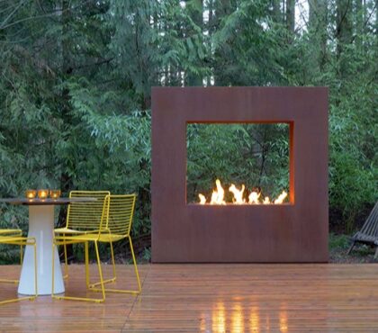 Cube Corten Gas Fire Pit for Patio Warming