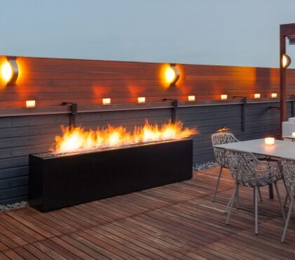 Rectangle Corten Steel Propane Fire Pit Patio