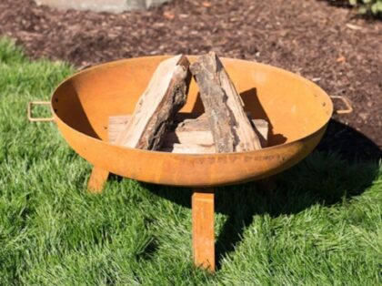The fire pit is made of corten steel sheet and is cut to maintain its physical strength
