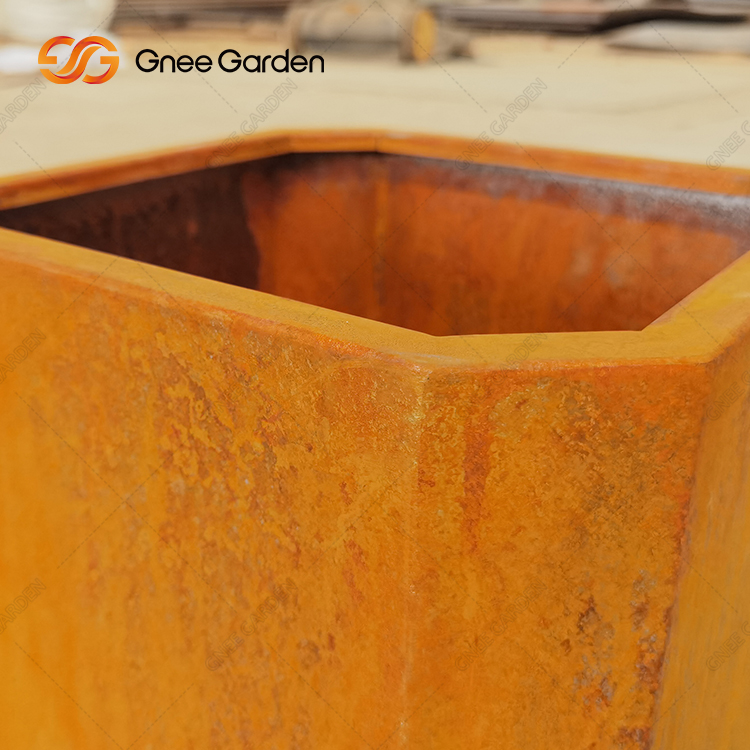 Corten Planter Box GN-PR-1221 Octagon Design Flower Pot, made of weathering steel and create a unique, durable and eco-friendly garden.