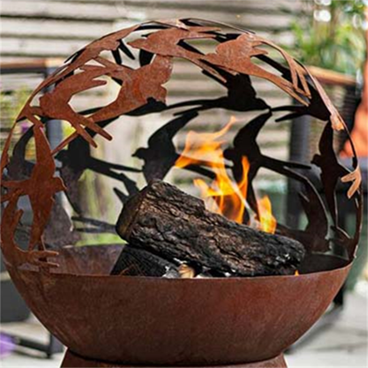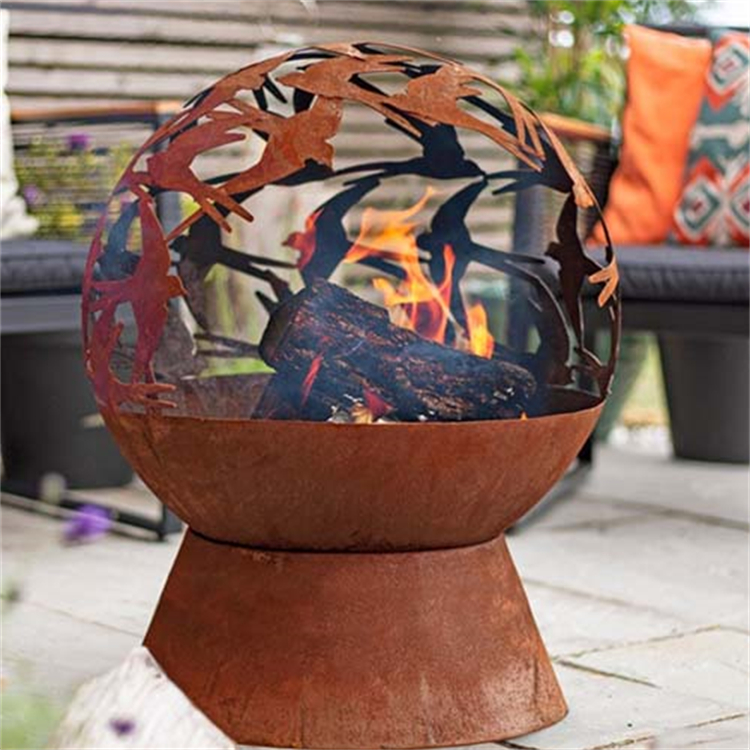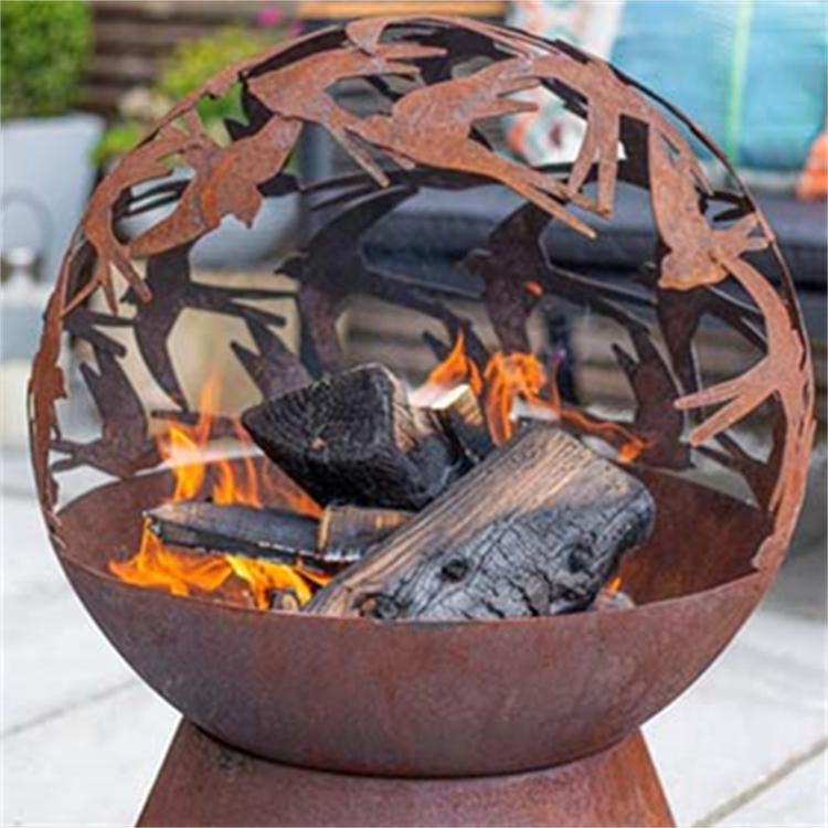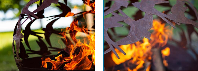 The fire pit is made of corten steel sheet and is cut to maintain its physical strength