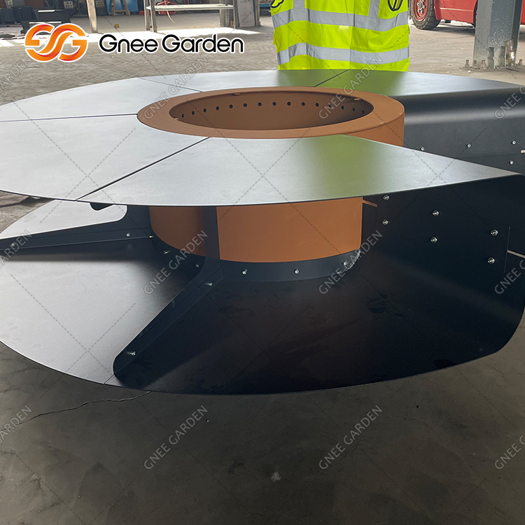 Home / Products / Corten Patio Furnitures / Corten Steel Patio Furnitures / Corten Table GN-OF-013 with Center Fire Pit