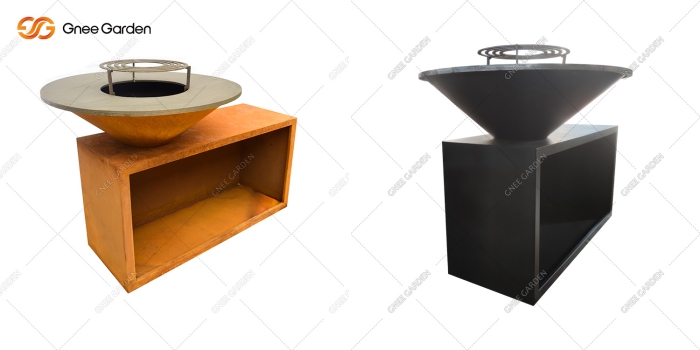 The European-style Corten steel outdoor BBQ grill GN-BBQ-209-Plus provides everything you need to have an ultimate outdoor cooking experience with friends or family. This all-in-one unit combines unbeatable style and functionality in a compact design. It includes a cooking unit with wood storage, a chopping board, and a handy accessories tray for utensils and condiments.