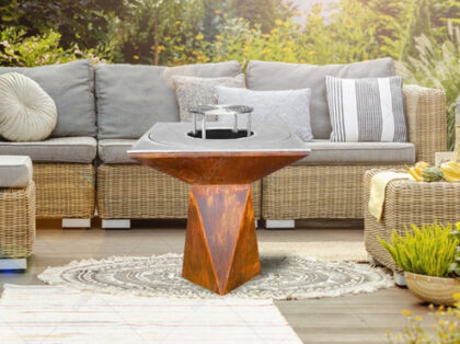 This fire bowl features a sturdy square base that elevates it off the ground. This makes it stable and keeps you safe from hot surfaces while giving it a modern look. It also allows air to circulate around it more easily.
