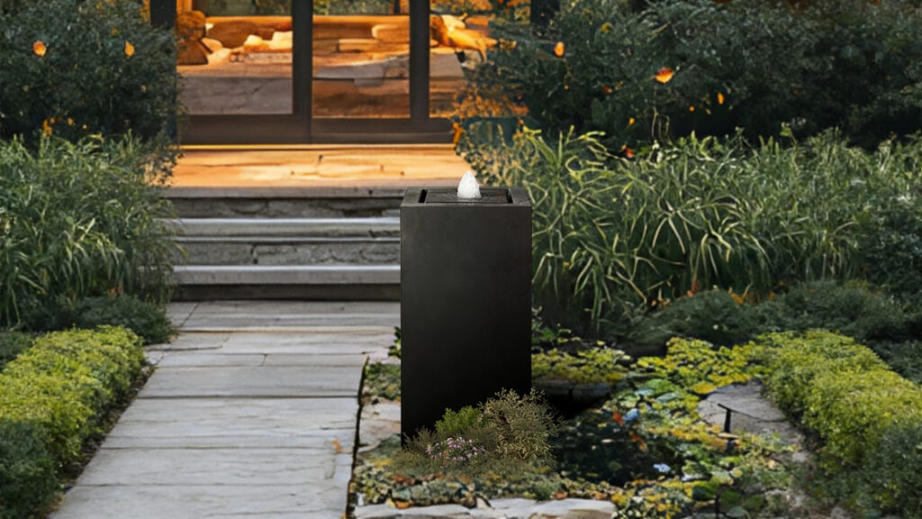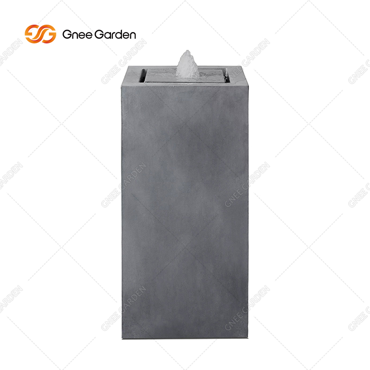 This is a plug-in vertical metal water fountain, designed for outdoor courtyard landscaping. Its minimalist square column shape and gentle bubbling flow bring a tranquil, elegant touch to gardens and patios.