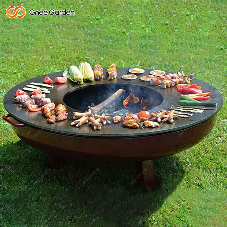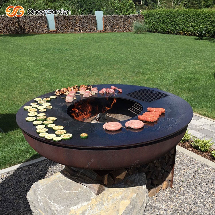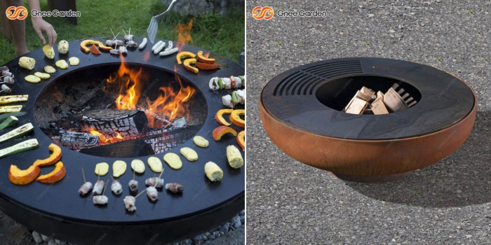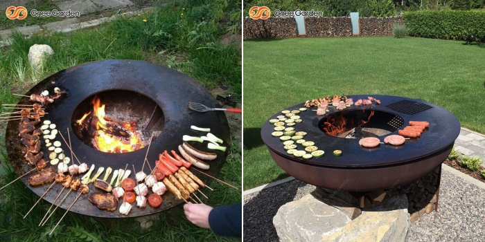 The Corten Fire Bowl BBQ with Grill Ring GN-BBQ-211-L is mainly used for grilling meat, fish, and vegetables. Start a fire or grill with just one object. Incidentally, this is an ancient cooking method that has not changed since ancient times and brings out intense, rustic flavors that are reminiscent of old traditions.