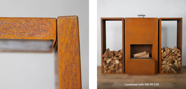 All-Weather Firewood Storage: Durable Corten steel construction protects logs from the elements year-round.