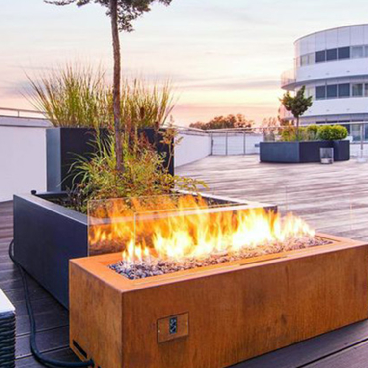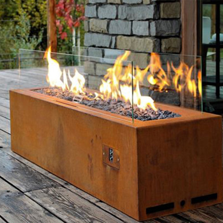 Corten Steel Gas Fire Pit with Optional Tempered Glass Screens