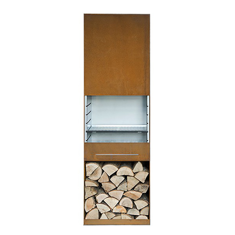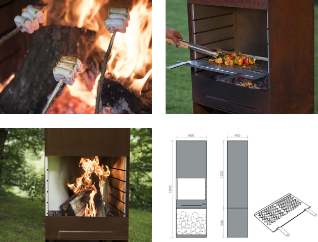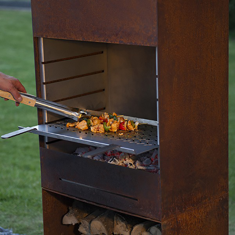 Dual-Purpose Design: Functions as both a Corten steel chiminea and a multi-functional barbecue grill.