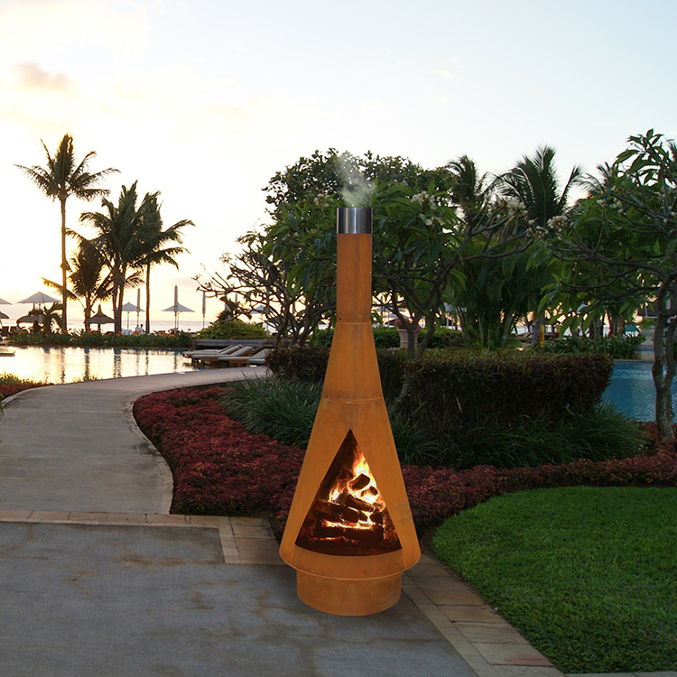 We can also manufacture this round-angled wood-burning outdoor fire pit from weathering steel with a high-temperature-resistant black-painted surface.